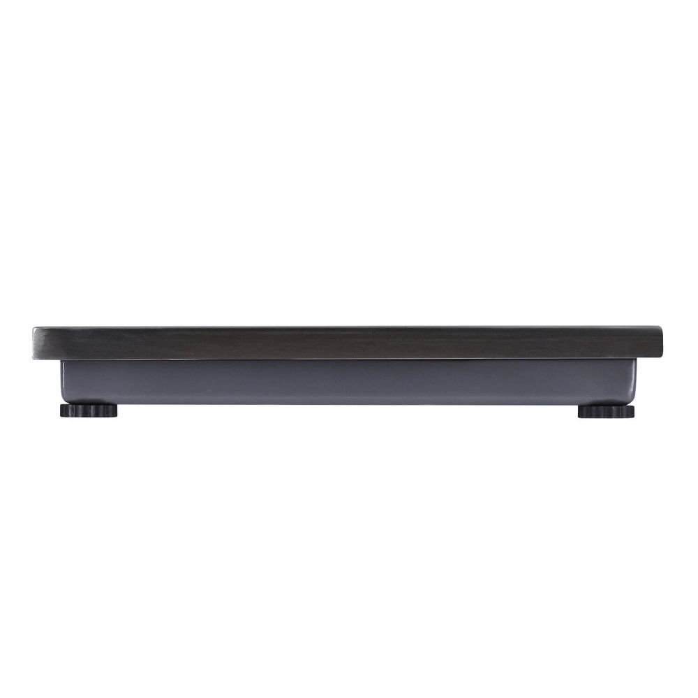 The scales are made in a bench design, which allows for convenient placement on any surface. The dimensions of the device are 300*280*46 mm. The black body is made of metal, ensuring its strength and durability. The weighing platform is made of stainless steel, providing a long service life and easy cleaning.