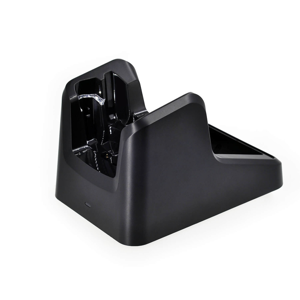 Кредл для зарядки для ТСД MERTECH Sunmi L2S может одновременно заряжать 2 аккумулятора. Он имеет два разъема: для подзарядки самого ТСД и для внешнего аккумулятора. Для подзарядки внешнего аккумулятора имеется разбем спереди устройства.